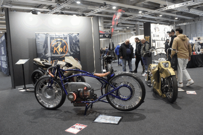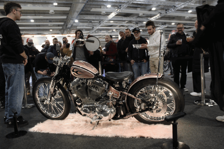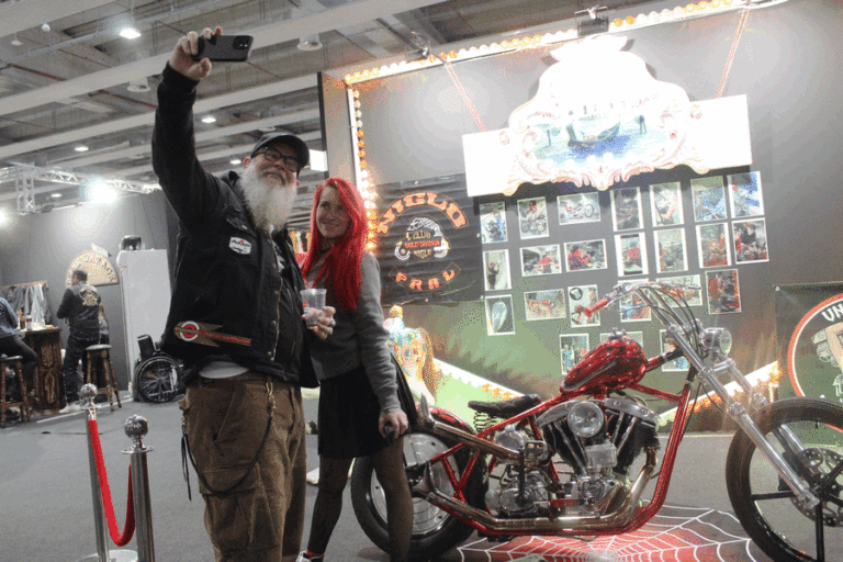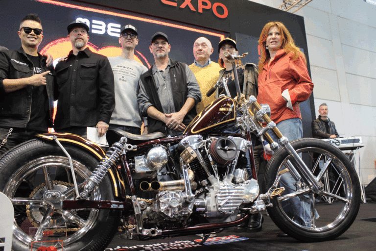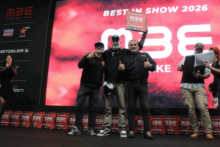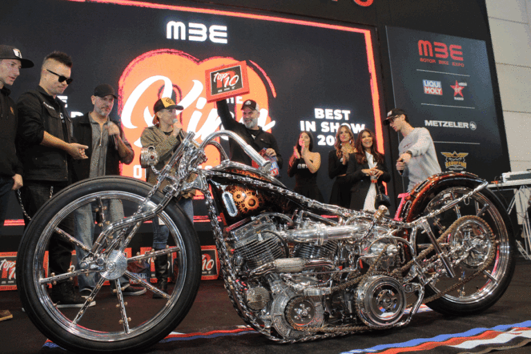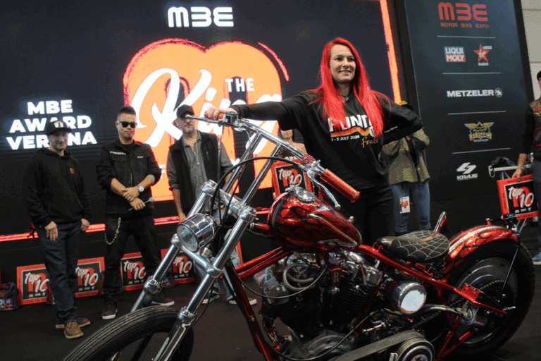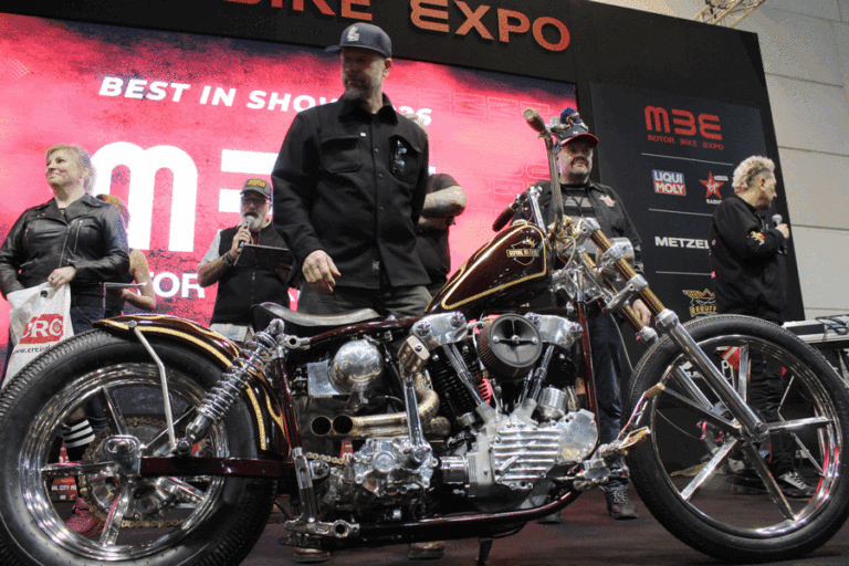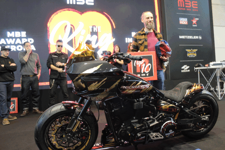 Molti i concorsi che si sono svolti a MBE 2026 tra tutti MBE Award “The King Of Kustom” che quest’anno se lo sono aggiudicato gli inglesi di El Lobo Cycles con Royal Blood un chopperino con telaio hand made motore S&S replica di un Knuclehead, che non poche perplessità ha destato tra gli addetti ai lavori e anche tra il pubblico. Quello che è sicuro che stavolta non si può dire che sia una moto che non possa circolare tranquillamente per strada. La giuria tecnica composta da Cristian Sosa di Sosa Metalworks, Mike Rabideu di Majik Mike’s Design, Satya Kraus di Kraus Motor e Wiston Yea di Rough Crafts ha decretato la moto di El Lobo la regina della fiera.