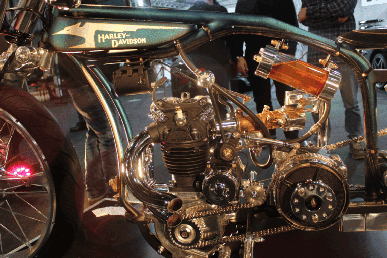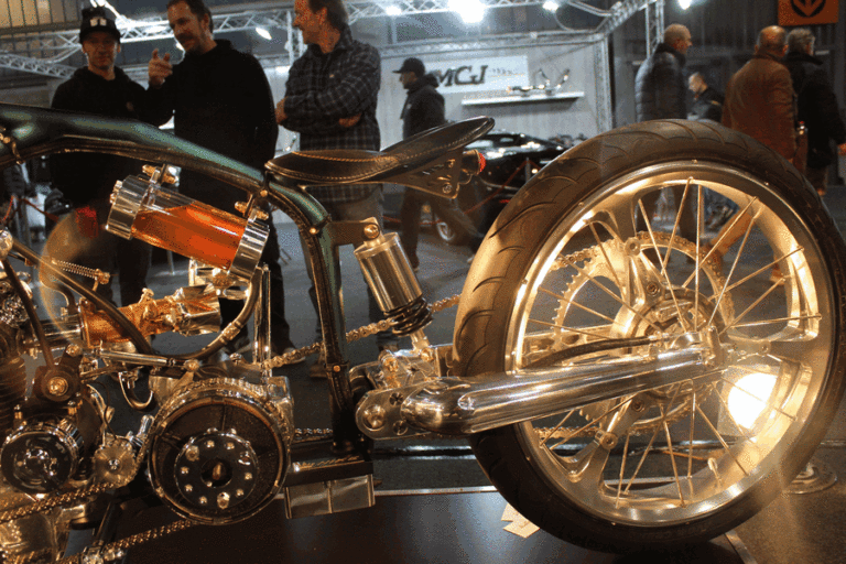 Incredibili le special presentate a Verona da Pepe Lazzara, Los Sicanos Arte del Barrio con una Chicana in onore della sua terra, la Trinacria, che conferma essere il preparatore italo-belga uno dei massimi esponenti mondiali del filone Chicano Style. L’altra di Stephan Grand di T4 Motor-Cycles svariate migliaia di ore di lavoro, tutta interamente hand made, motore con turbocompressore. Entrambe le moto sono reduci da Sturgis dove spesso si sono scambiate le prime posizioni nei vari contest organizzati dell’evento. Queste moto sono di una categoria a parte, di un altro pianeta bisogna ammetterlo.