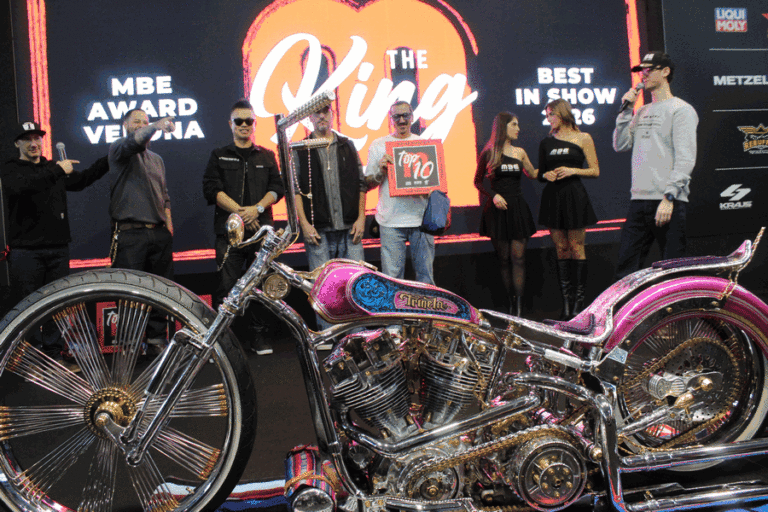 MBE Premium Selection, in collaborazione con la rivista Lowride, ha visto come Best of Show la Nike di Gallery Motorcycles. Oltre 20 i premi assegnati, tra cui uno Special Award alla Suzuki Hayabusa dell’emiratino Ahmed Al Hammadi, il Punta Choice della crew di Punta International a T4 Motorcycles, il Best Freestyle ad Arnone Garage e lo Sporty Award di Duecilindri allo Sportster di Wild Wheels Garage. Prima dei bike contest sono stati premiati non le moto più appariscenti, ma i piloti più veloci che hanno partecipato alla prima stagione della Bagger Racing European Cup: dopo il gran finale a Jerez di novembre, a trionfare nella classifica assoluta è stato Manuel Grandi su Indian Challenger preparata da Denis Pagani di Thirteen Garage. Sul secondo gradino del podio Ruben Xaus e bronzo per Andrea Tomio. La classifica Silver è stata assegnata invece a Marco Attanasio su Ducati Diavel. Ha chiuso la domenica di contest il Clubstyle Connection di Punta International che ha valorizzato le migliori tre realizzazioni: il Road Glide di 4Touring e Vity’s Design, il Low Rider ST di Rck Roll Chop e al primo posto il Dyna di Lucas Carbon.