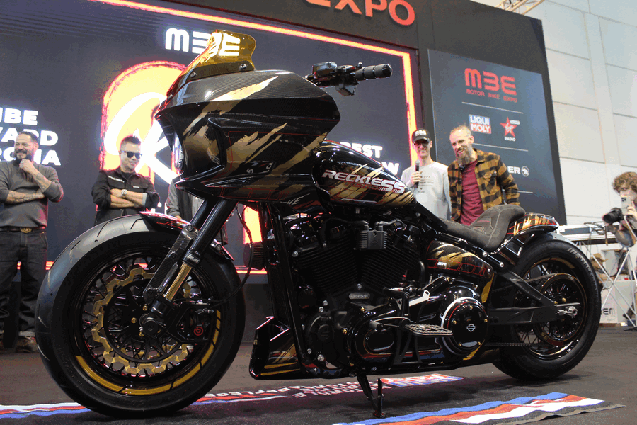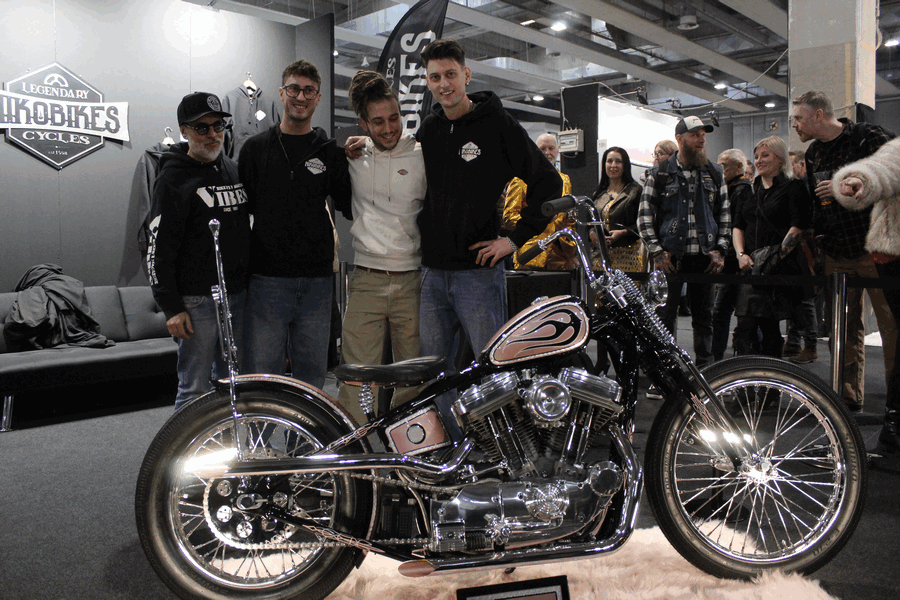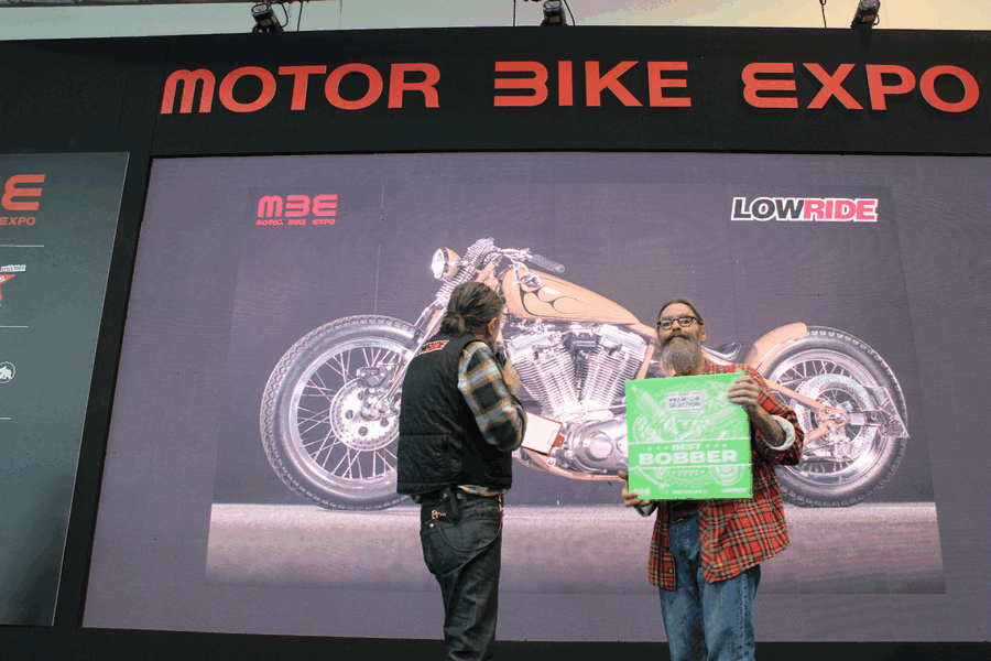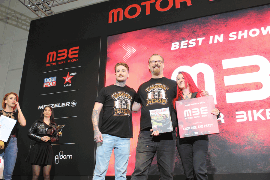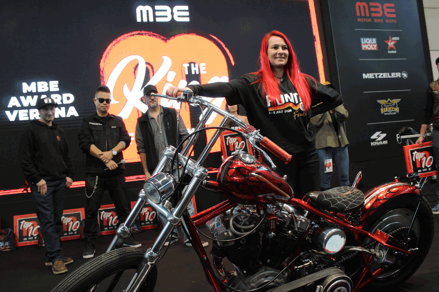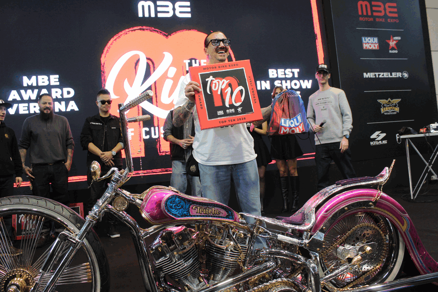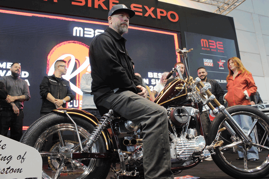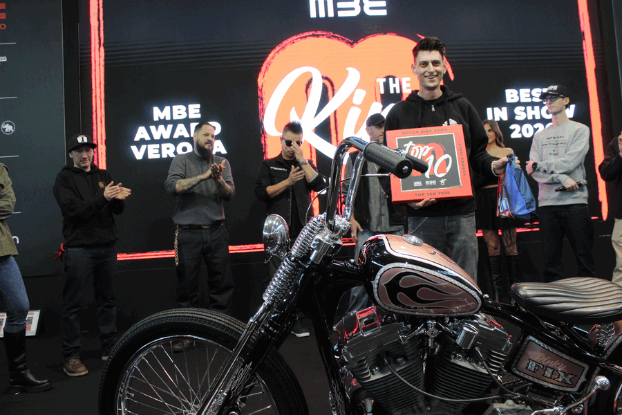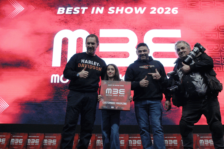Molti i concorsi che si sono svolti a MBE 2026 tra tutti MBE Award “The King Of Kustom” che quest’anno se lo sono aggiudicato gli inglesi di El Lobo Cycles con Royal Blood un chopperino con telaio hand made motore S&S replica di un Knuclehead, che non poche perplessità ha destato tra gli addetti ai lavori e anche tra il pubblico. Quello che è sicuro che stavolta non si può dire che sia una moto che non possa circolare tranquillamente per strada. La giuria tecnica composta da Cristian Sosa di Sosa Metalworks, Mike Rabideu di Majik Mike’s Design, Satya Kraus di Kraus Motor e Wiston Yea di Rough Crafts ha decretato la moto di El Lobo la regina della fiera.