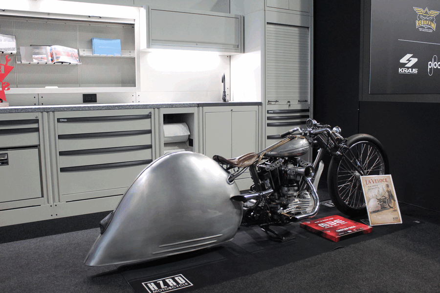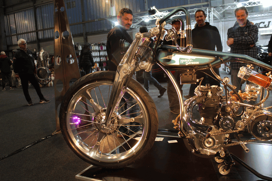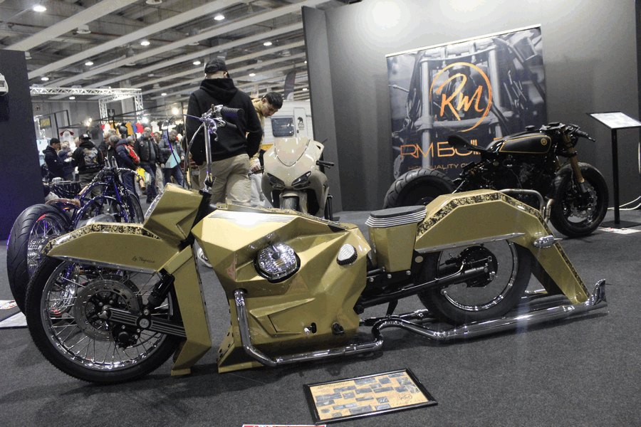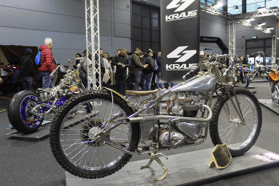 Incredibili le special presentate a Verona da Pepe Lazzara, Los Sicanos Arte del Barrio con una Chicana in onore della sua terra, la Trinacria, che conferma essere il preparatore italo-belga uno dei massimi esponenti mondiali del filone Chicano Style. L’altra di Stephan Grand di T4 Motor-Cycles svariate migliaia di ore di lavoro, tutta interamente hand made, motore con turbocompressore. Entrambe le moto sono reduci da Sturgis dove spesso si sono scambiate le prime posizioni nei vari contest organizzati dell’evento. Queste moto sono di una categoria a parte, di un altro pianeta bisogna ammetterlo.