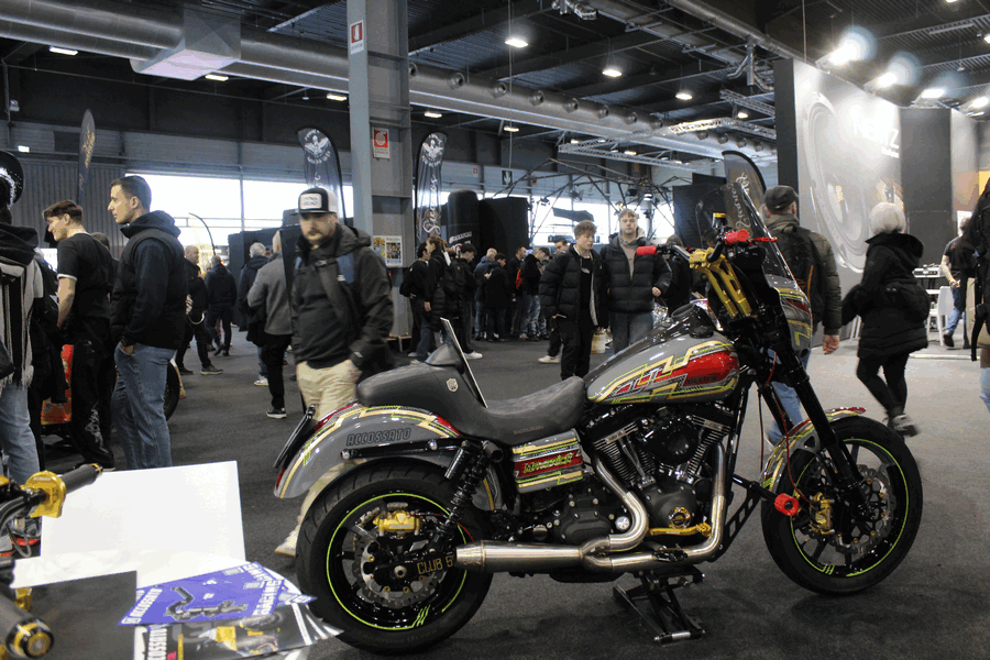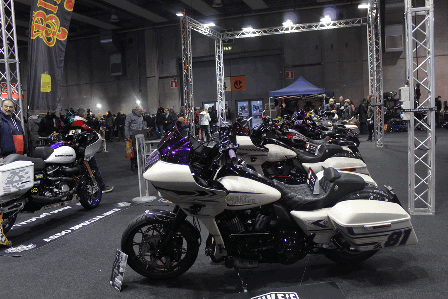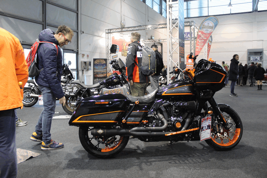 Tra i preparatori presenti abbiamo incontrato l’officina Burning Road che proponeva un paio di belle realizzazioni tra cui un bel chopperino e una touring che Rocco Roberto ha portato in fiera. Moto perfettamente a proprio agio su strada, fatte per macinare chilometri prerogativa fondamentale dell’officina Lodigiana ma che non sfigurano affatto anche sotto i riflettori di una fiera.